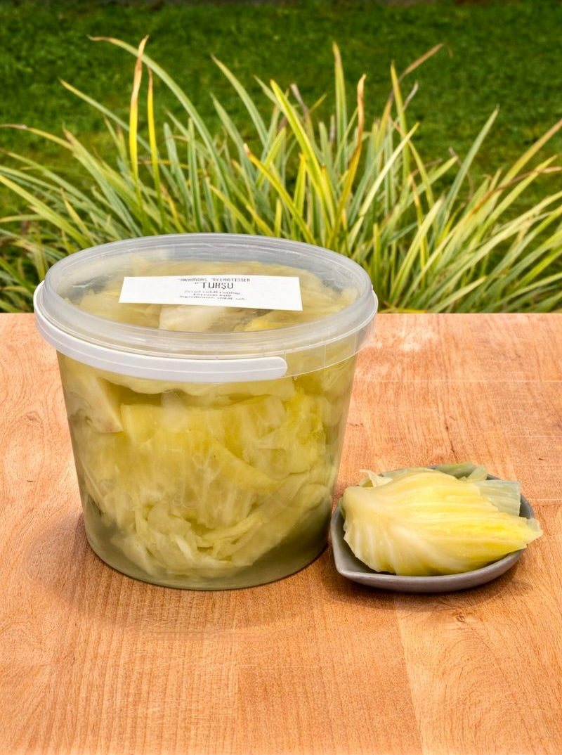 Mjölksyrad vitkål i saltlag.